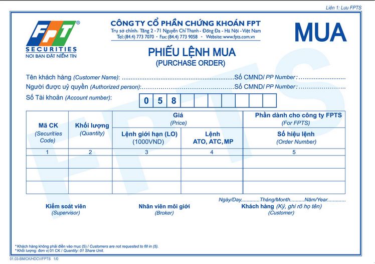 (Đây cái phiếu lệnh mua chứng khoán thời trước nó trông như thế này :D, h thì ai cũng đặt lệnh online rồi, chắc chả ai điền phiếu tay rồi xếp hàng nộp cho nhân viên như hơn chục năm trước =)))
