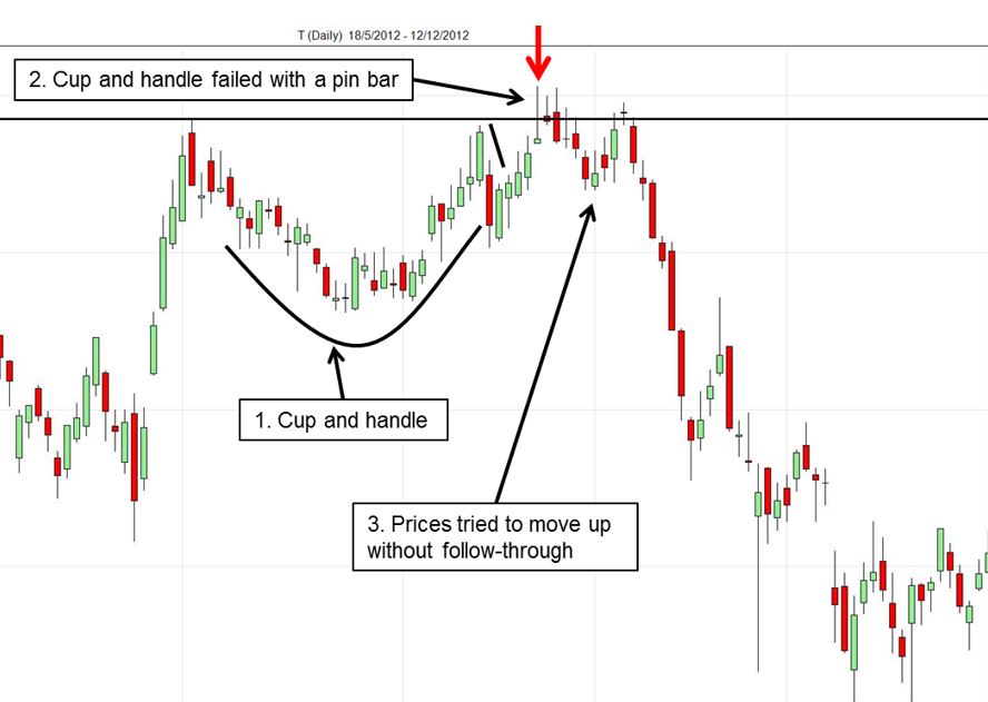 Thế mua ở điểm số (3) – điểm break out thì có chắc chắn là ăn không? Ơ cũng tùy, tùy vào bạn nhìn có đúng cái cup and handle không í. Việc hình thành được mô hình cup and handle còn phụ thuộc nhiều vào khung thời gian bạn nhìn, vào khối lượng. Thế nên có thể bạn sẽ gặp nhiều cái trông giông giống nhưng turn out ra là 1 failed cup and handle pattern.